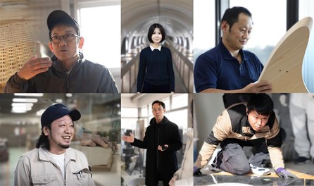 Membros (no sentido horário, a partir do canto superior esquerdo): Yuji Kuroda, Shikan Tategu Kogei Co. Ltd., Yuri Tamura, designer interna da Lexus, Shingo Yamashita, artesão de modelos em madeira interno da Lexus, Kazuhiro Nakata, Tendo Mokko Co. Ltd., Moto Takabatake, designer interno da Lexus, Ryota Inagaki, Inagaki Sekizai-ten Co. Ltd.