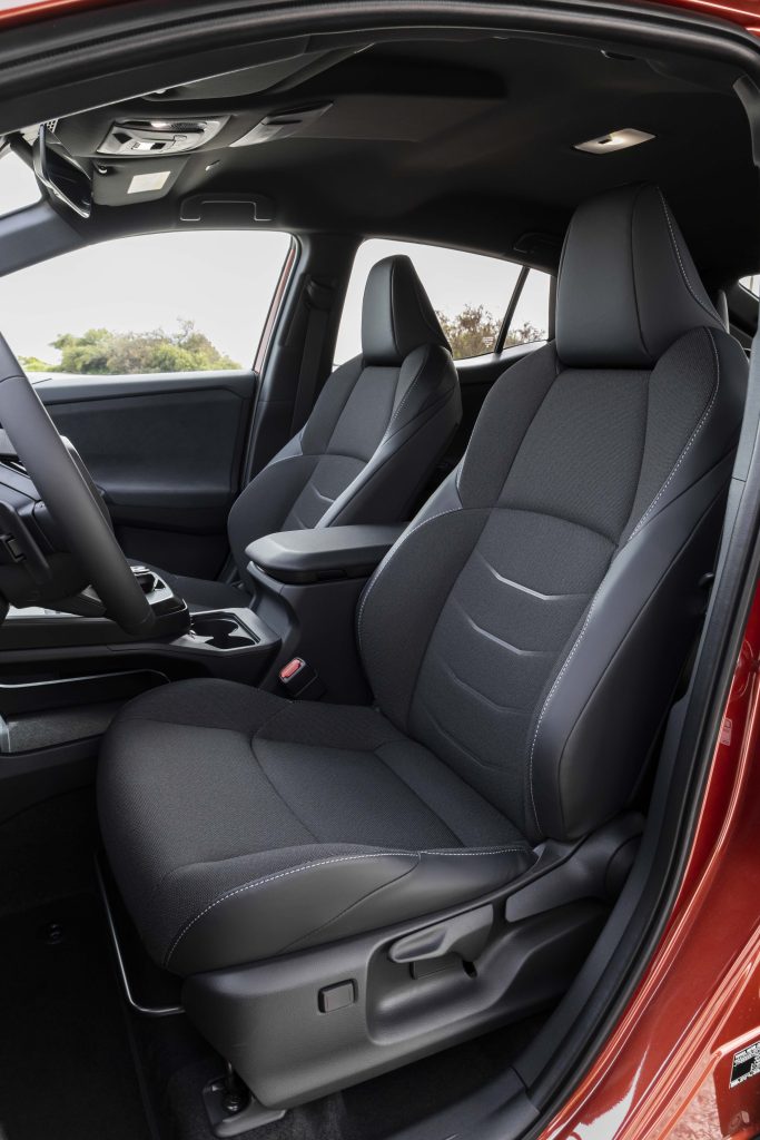 A cabina espaçosa partilha a sua disposição dianteira espaçosa com o novo bZ4X, embora a identidade distinta do Toyota C−HR+ seja estabelecida através de um acabamento único do painel de instrumentos e acabamentos exclusivos dos bancos. Dependendo da versão, o novo Toyota C−HR+ apresenta materiais para os bancos, tais como couro sintético, acabamentos semelhantes a camurça e tecido, todos fabricados com materiais PET reciclados. Estas escolhas sustentáveis ajudam a reduzir as emissões de CO₂ durante o processo de produção, criando ao mesmo tempo uma sensação de requinte.